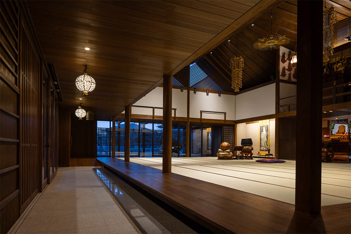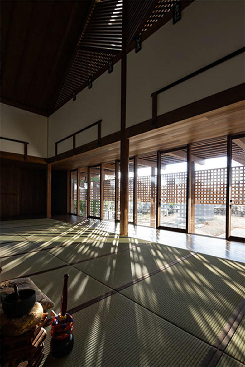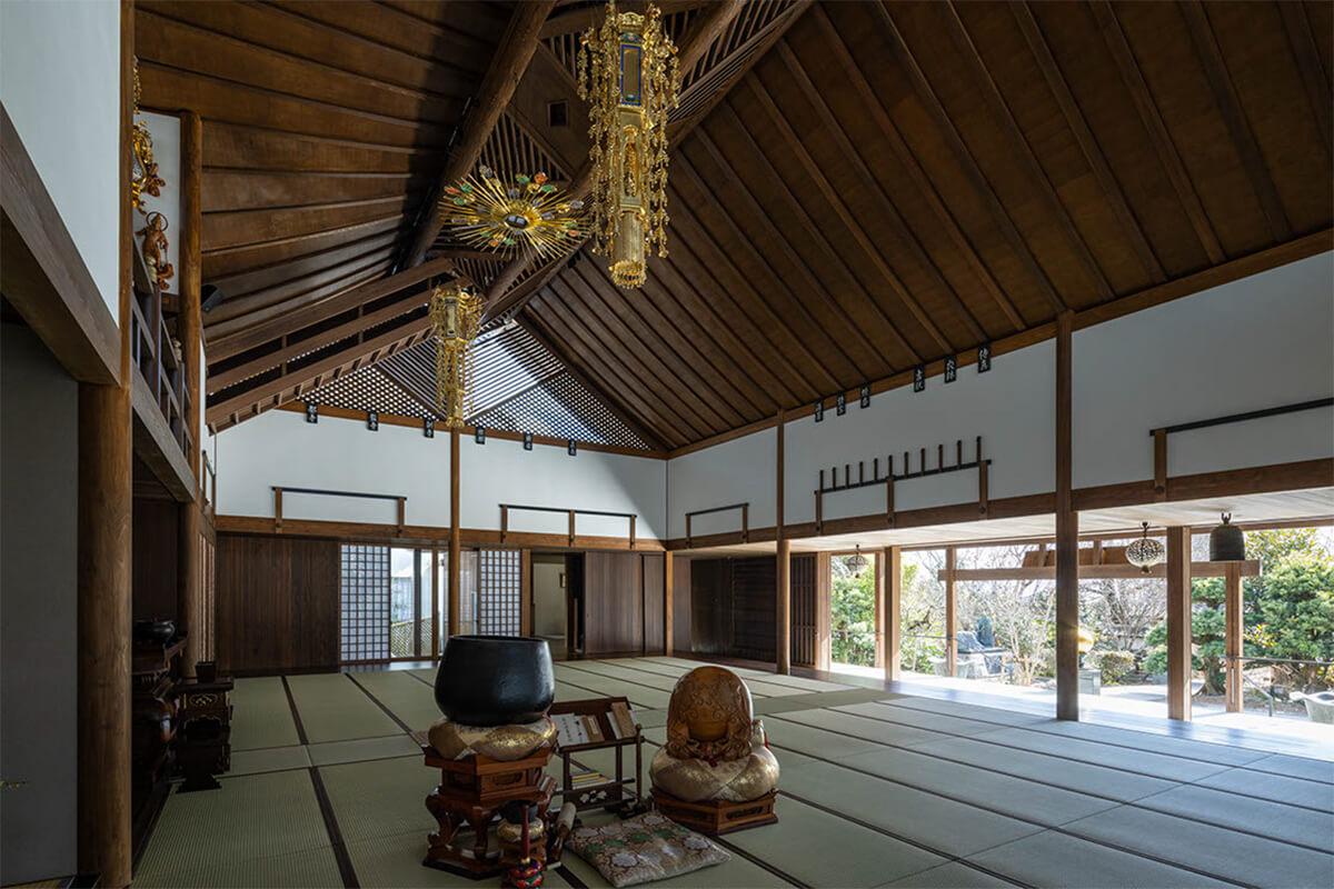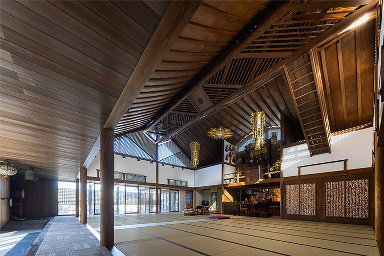 ご住職は、これまでの曹洞宗客殿形式の本堂のように、堂内の中心にご本尊を安置すると、お寺での多目的な活動の妨げとなると考えておられた。そこで、伝統的な寺院建築を得意とする設計事務所や建設会社に、ご本尊を中心としない建物の提案を求めたが、なかなか共感されずに困っておられた。
