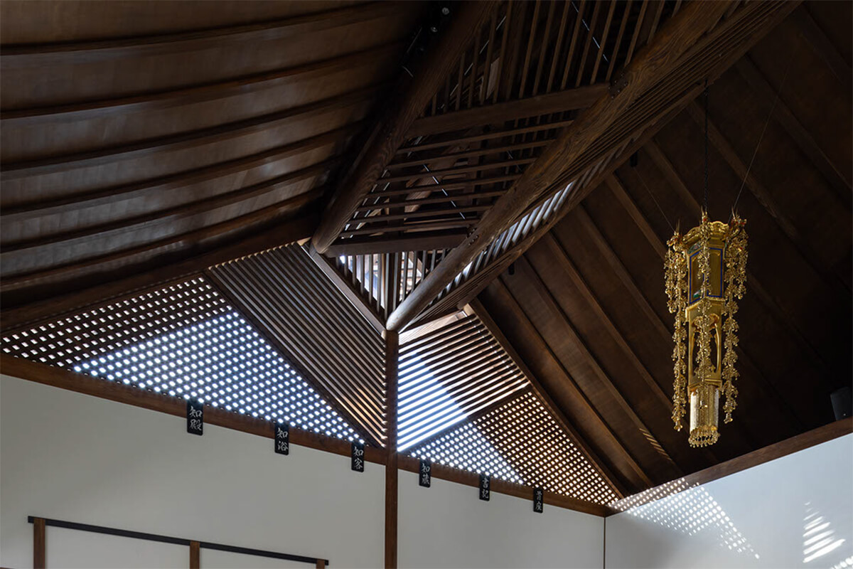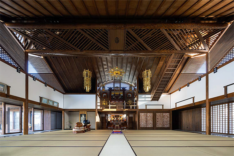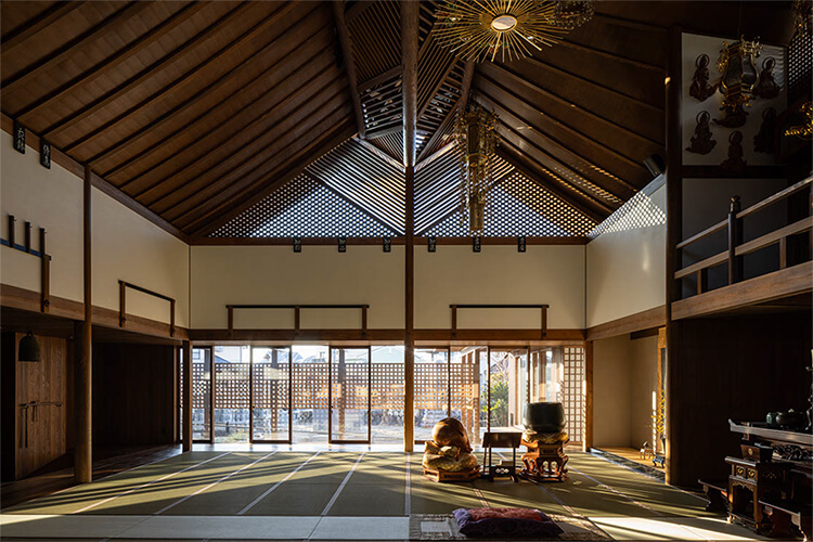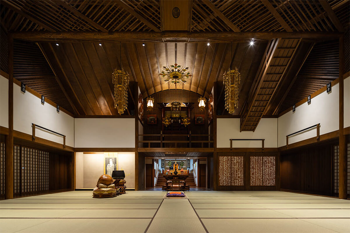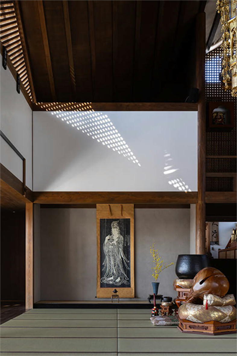 ご住職は、これまでの曹洞宗客殿形式の本堂のように、堂内の中心にご本尊を安置すると、お寺での多目的な活動の妨げとなると考えておられた。そこで、伝統的な寺院建築を得意とする設計事務所や建設会社に、ご本尊を中心としない建物の提案を求めたが、なかなか共感されずに困っておられた。